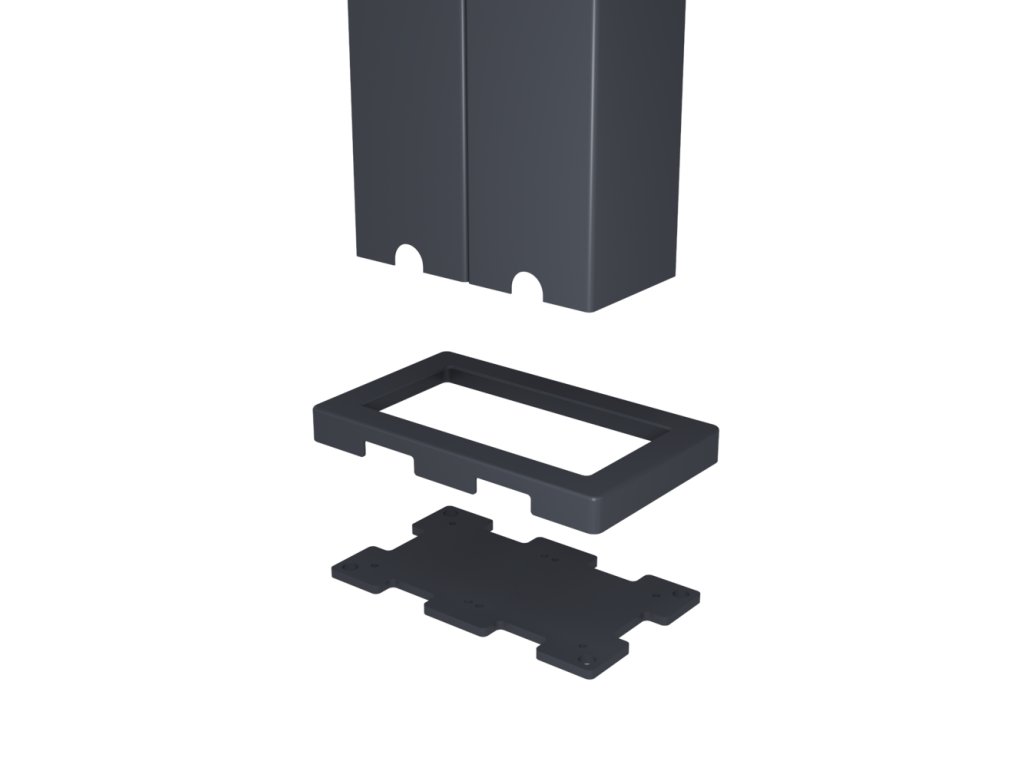 Robustní sloupek má rozměry 116x116 mm, při instalaci je zapotřebí počítat s patkou sloupku o rozměrech 160x160 mm. Patka je z 8 mm silné oceli a je navíc zakryta hliníkovým krytem s integrovaným drenážním systémem. Vyvýšený hliníkový profil s přidanou horní lištou ukrývá lamely tak, že z bočního pohledu nejsou viditelné a jsou v jedné linii s profilem.