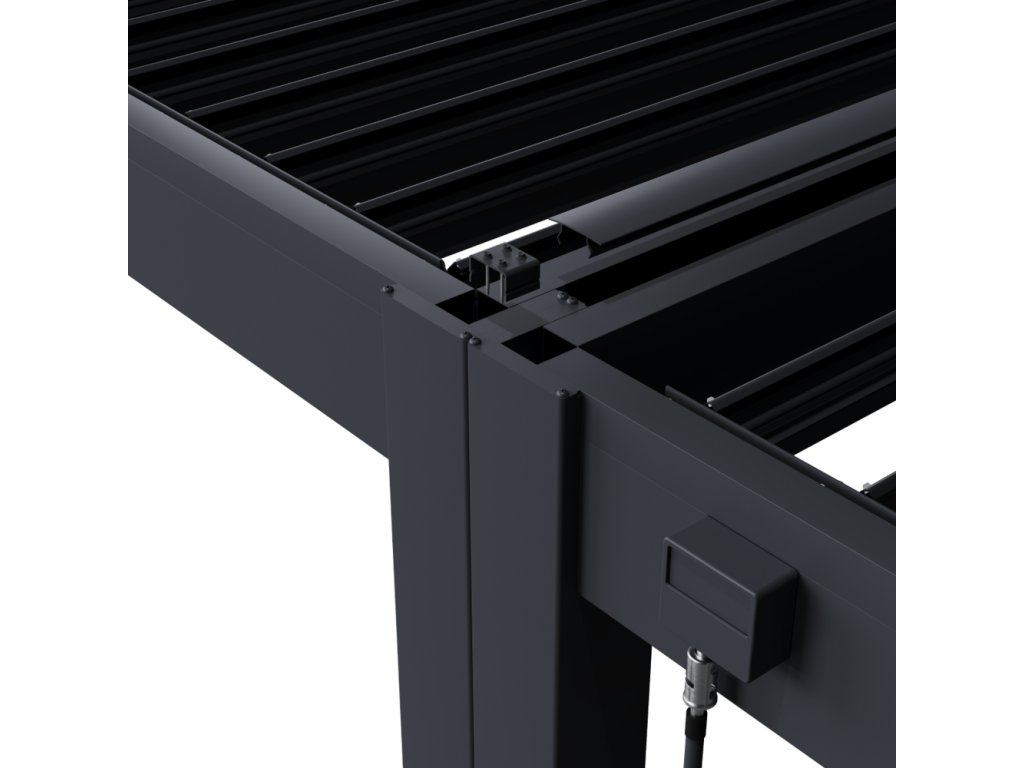 Nastavitelné otočné lamely (dvě vrstvy s dutým vnitřkem) Vás ochrání nejen před sluncem, ale i před deštěm. Lamely lze otáčet od 0°, kdy docílíte úplně uzavřené střechy až do 135°, díky čemuž získáte skvělou mobilitu a možnost zastínit slunce z jakékoliv strany.