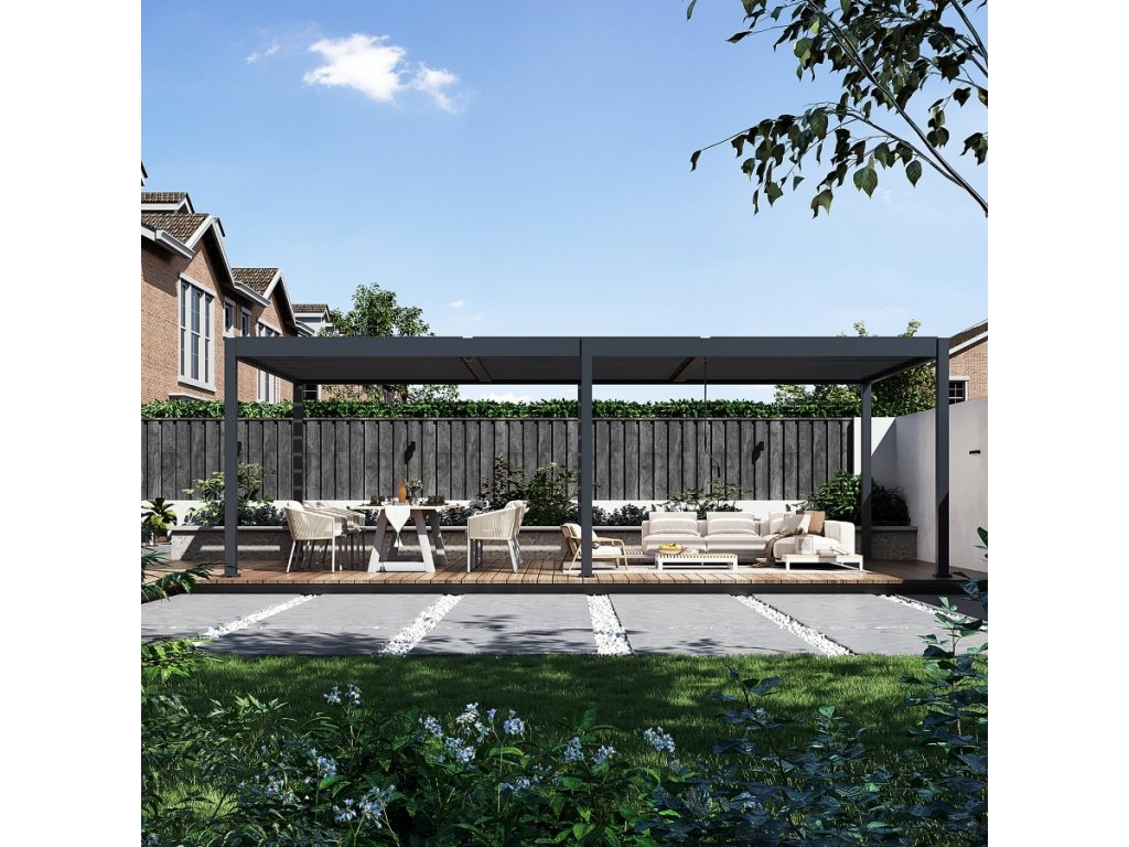 Prémiová zahradní hliníková volně stojící bioklimatická pergola o rozměrech 8x3 metry představuje ideální způsob zastřešení Vašeho venkovního posezení.