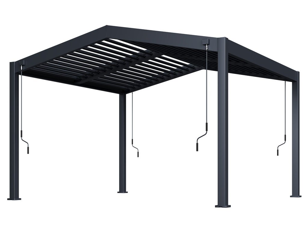 Celkem 52 nastavitelných otočných lamel Vás ochrání nejen před sluncem, ale i před deštěm. Lamely jsou rozděleny do 4 zón. Každou tuto část je možné ovládat zvlášť. Lamely lze otáčet od 0°, kdy docílíte úplně uzavřené střechy až do 135°, díky čemuž získáte skvělou mobilitu a možnost zastínit slunce z jakékoliv strany.