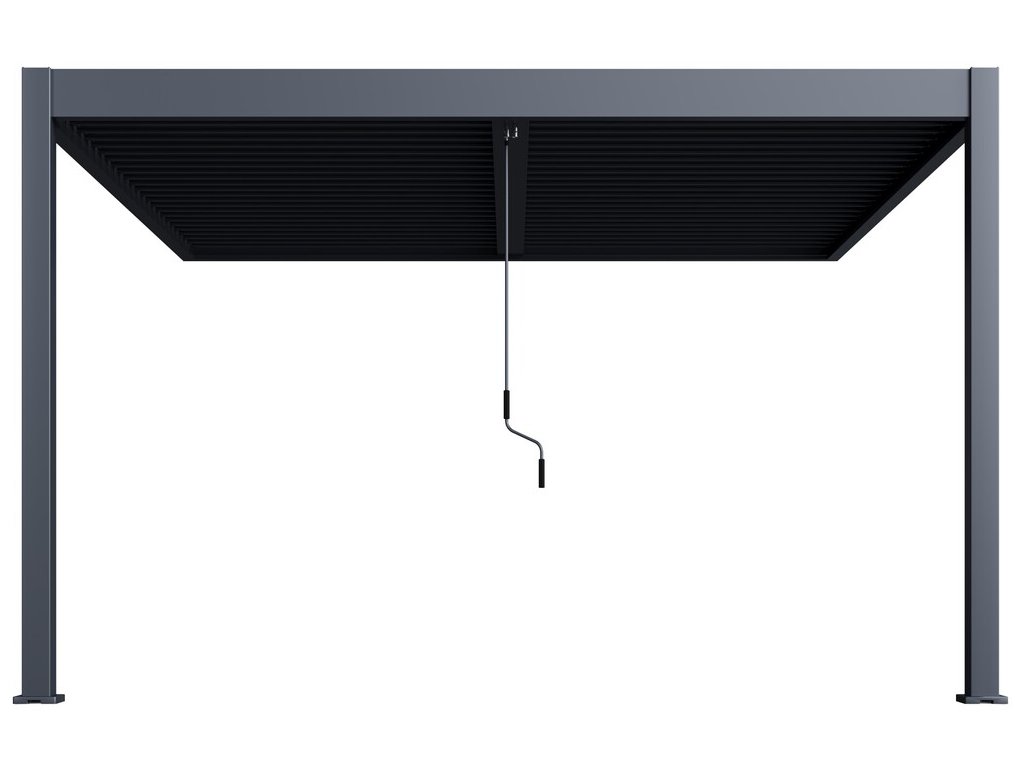 Lamely lze ovládat jednoduše manuálně pomocí kličky. Ta je navržena tak, abyste lamely mohli snadno otočit do požadované polohy a aby při otáčení lamel nedocházelo k poškrábání konstrukce pergoly. Zároveň je klička na konstrukci umístěna tak, aby při doplnění pergoly o zástěny či panely nebránila ve snadné manipulaci s těmito doplňky. Kličku můžete jednoduše sundat.