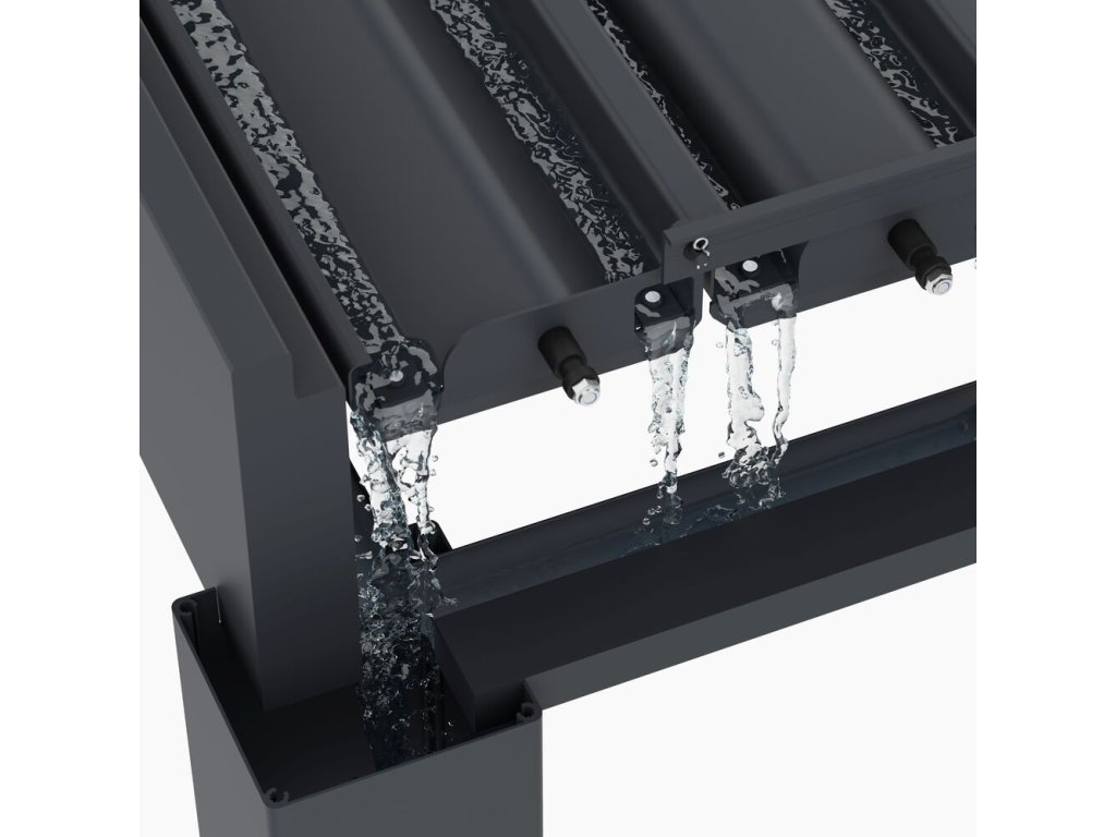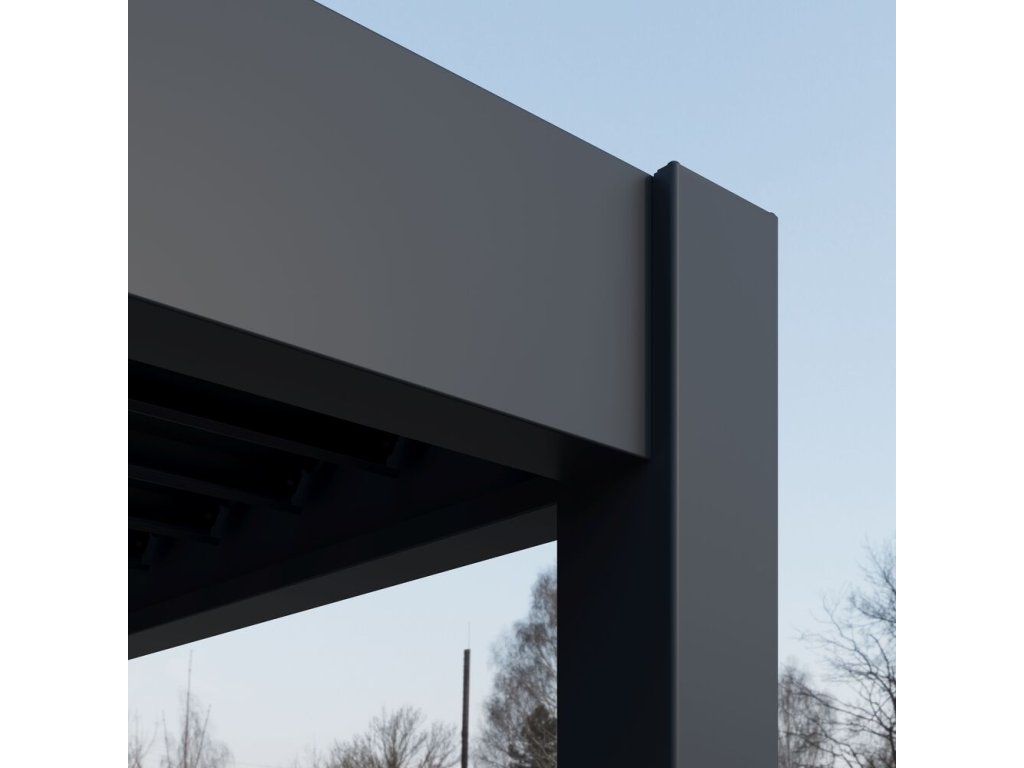 Velmi pevná a stabilní konstrukce v antracitové barvě RAL 7016, v matné povrchové úpravě se hodí do každého prostoru. Pergola je vyrobena z vysoce kvalitního hliníku, který je ošetřen práškovou barvou, což zaručuje odolnost vůči povětrnostním vlivům.