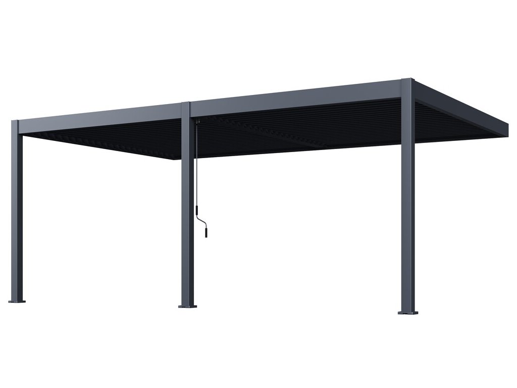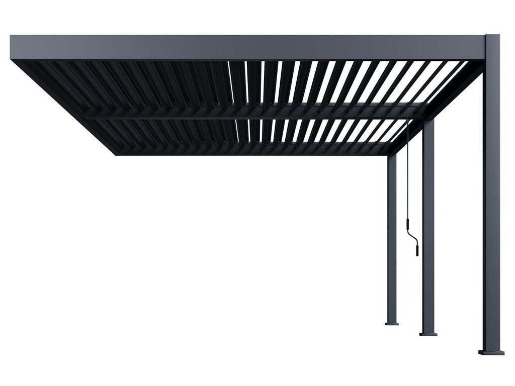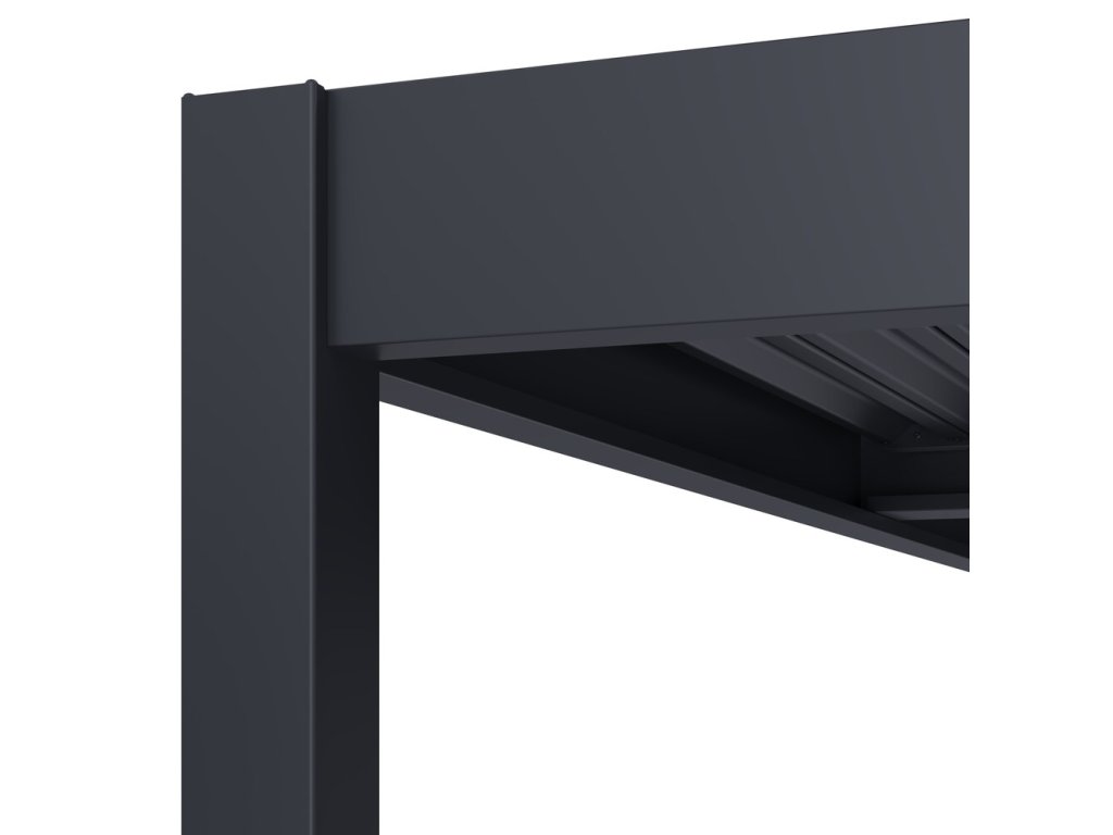 Velmi pevná a stabilní konstrukce v antracitové barvě RAL 7016, v matné povrchové úpravě se hodí do každého prostoru. Pergola je vyrobena z vysoce kvalitního hliníku, který je ošetřen práškovou barvou, což zaručuje odolnost vůči povětrnostním vlivům.