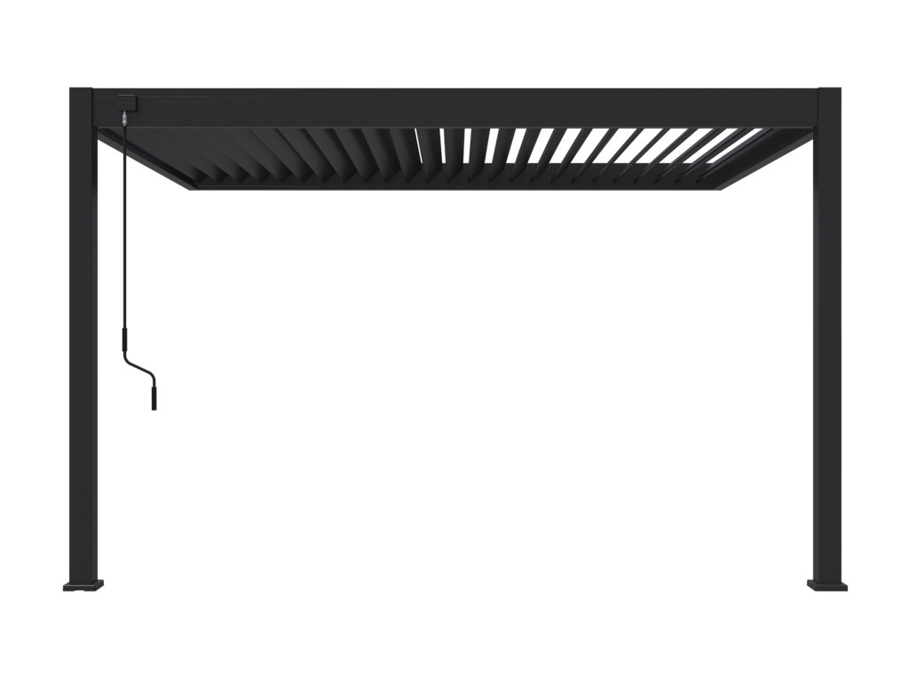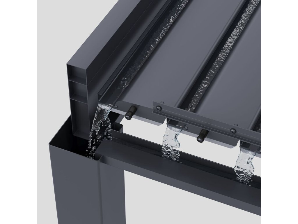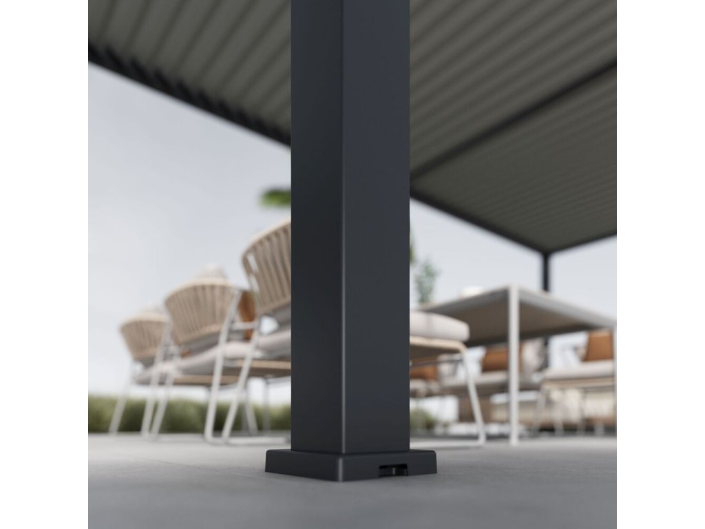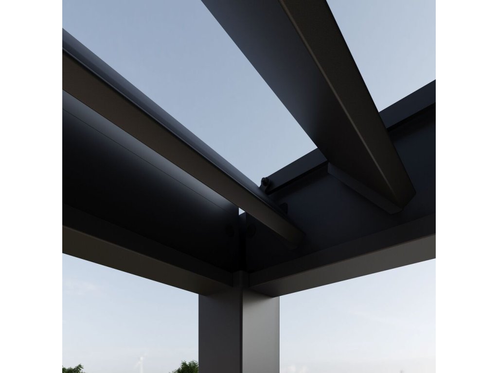Velmi pevná a stabilní konstrukce v antracitové barvě RAL 7016, v matné povrchové úpravě se hodí do každého prostoru. Pergola je vyrobena z vysoce kvalitního hliníku, který je ošetřen práškovou barvou, což zaručuje odolnost vůči povětrnostním vlivům.