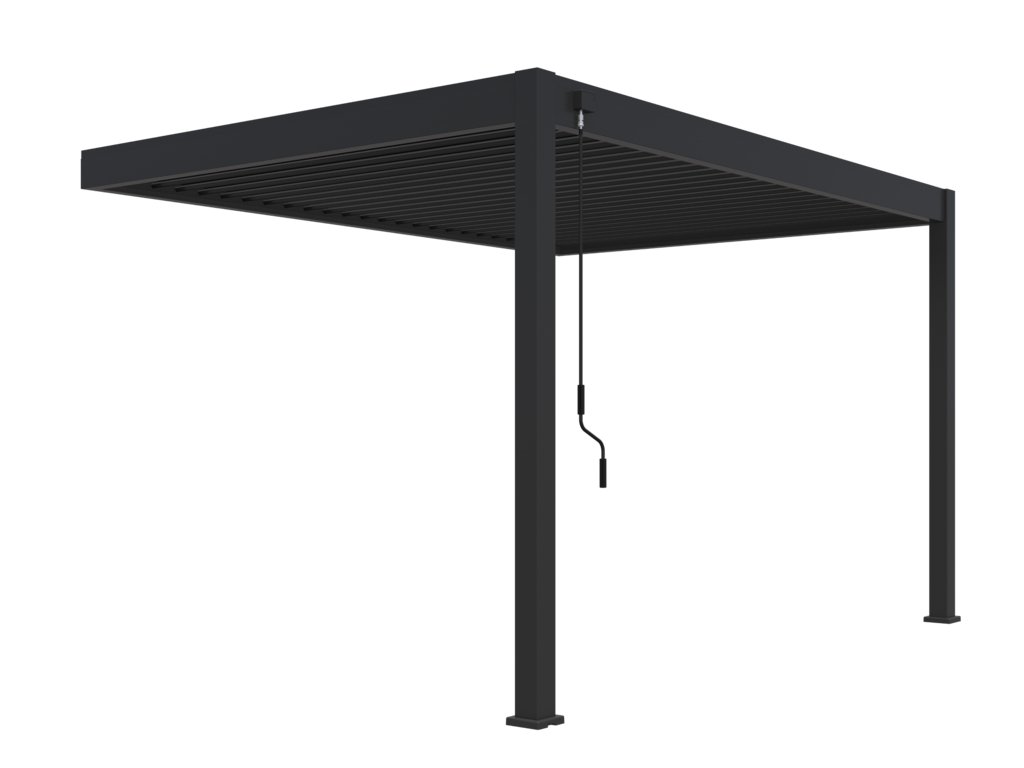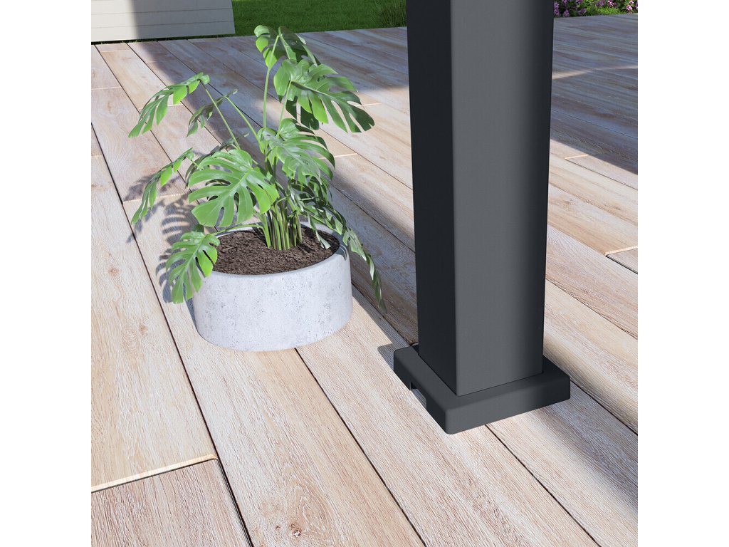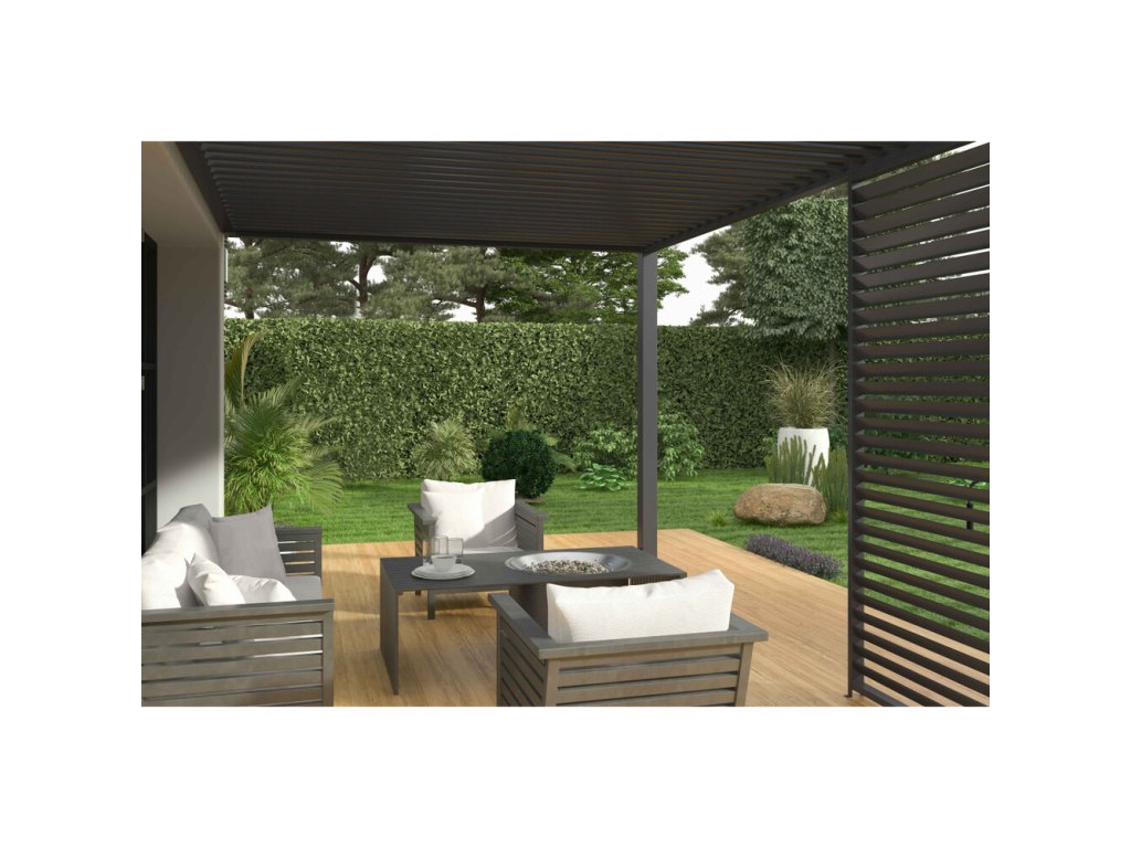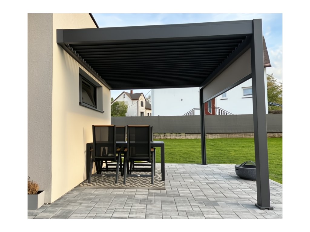 Velmi pevná a stabilní konstrukce v antracitové barvě RAL 7016, v matné povrchové úpravě se hodí do každého prostoru. Pergola je vyrobena z vysoce kvalitního hliníku, který je ošetřen práškovou barvou, což zaručuje odolnost vůči povětrnostním vlivům.