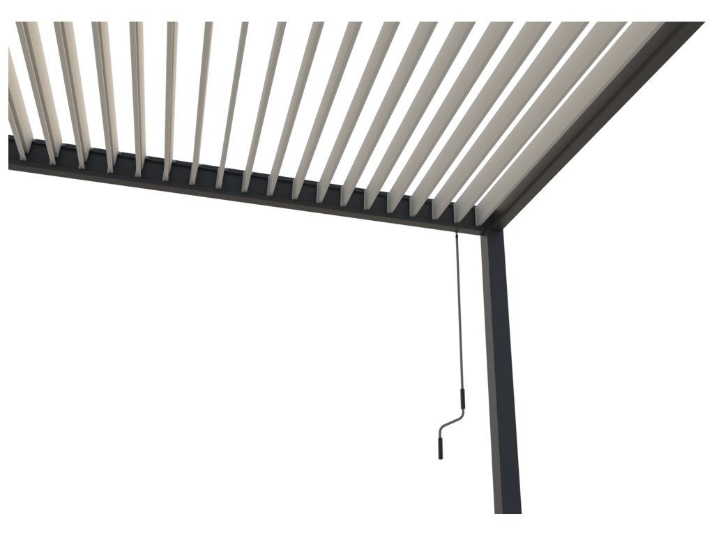 Lamely lze ovládat jednoduše manuálně pomocí kličky. Ta je navržena tak, aby šla jednoduše naklonit, aby při otáčení lamel nedocházelo k poškrábání konstrukce pergoly. Zároveň je klička na konstrukci umístěna tak, aby při doplnění pergoly o přední zástěnu či panely nebránila ve snadné manipulaci s těmito doplňky.
